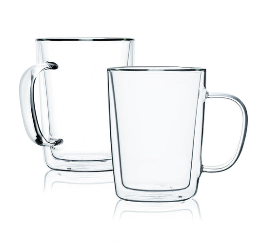 Set of 4 Double Wall Glass Mugs, Coffee Mugs, Tea Cups With Handle