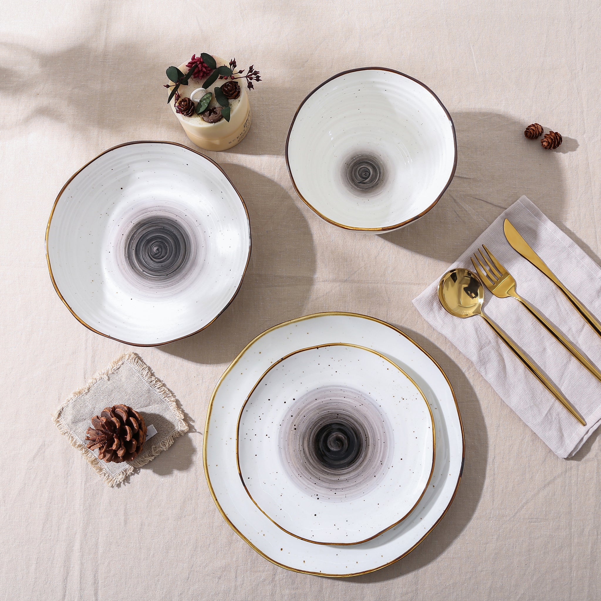 Make a fashion statement with your tableware with the Christian Siriano Luma porcelain dinnerware collection. Featuring uneven brown edges, speckled patterning and a colorful swirl, these dishes bring an element of casual sophistication to your table. Complete with dinner plates, salad plates, soup bowls, and pasta bowls, the Luma is the ideal set to enhance your rustic-chic vibe.